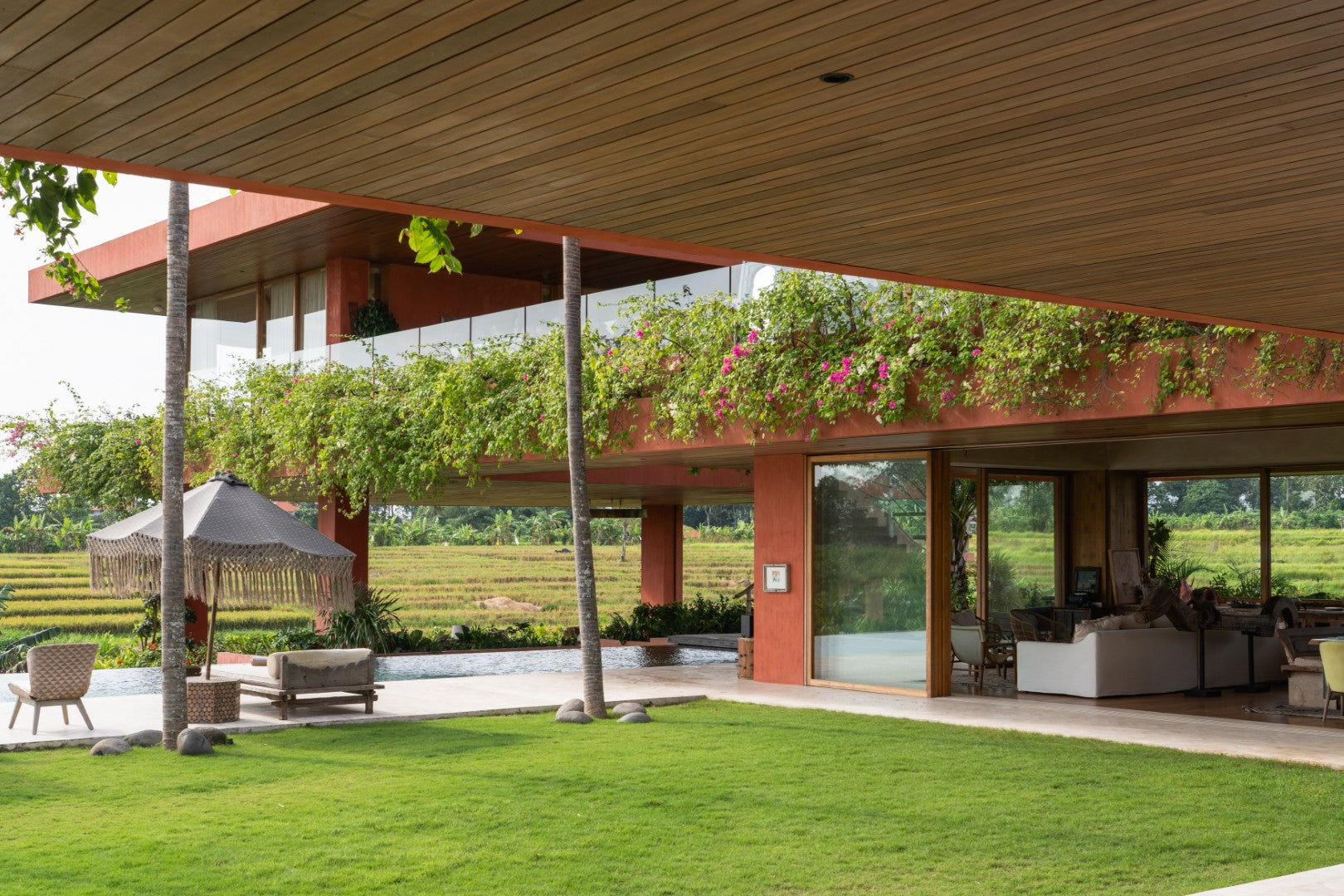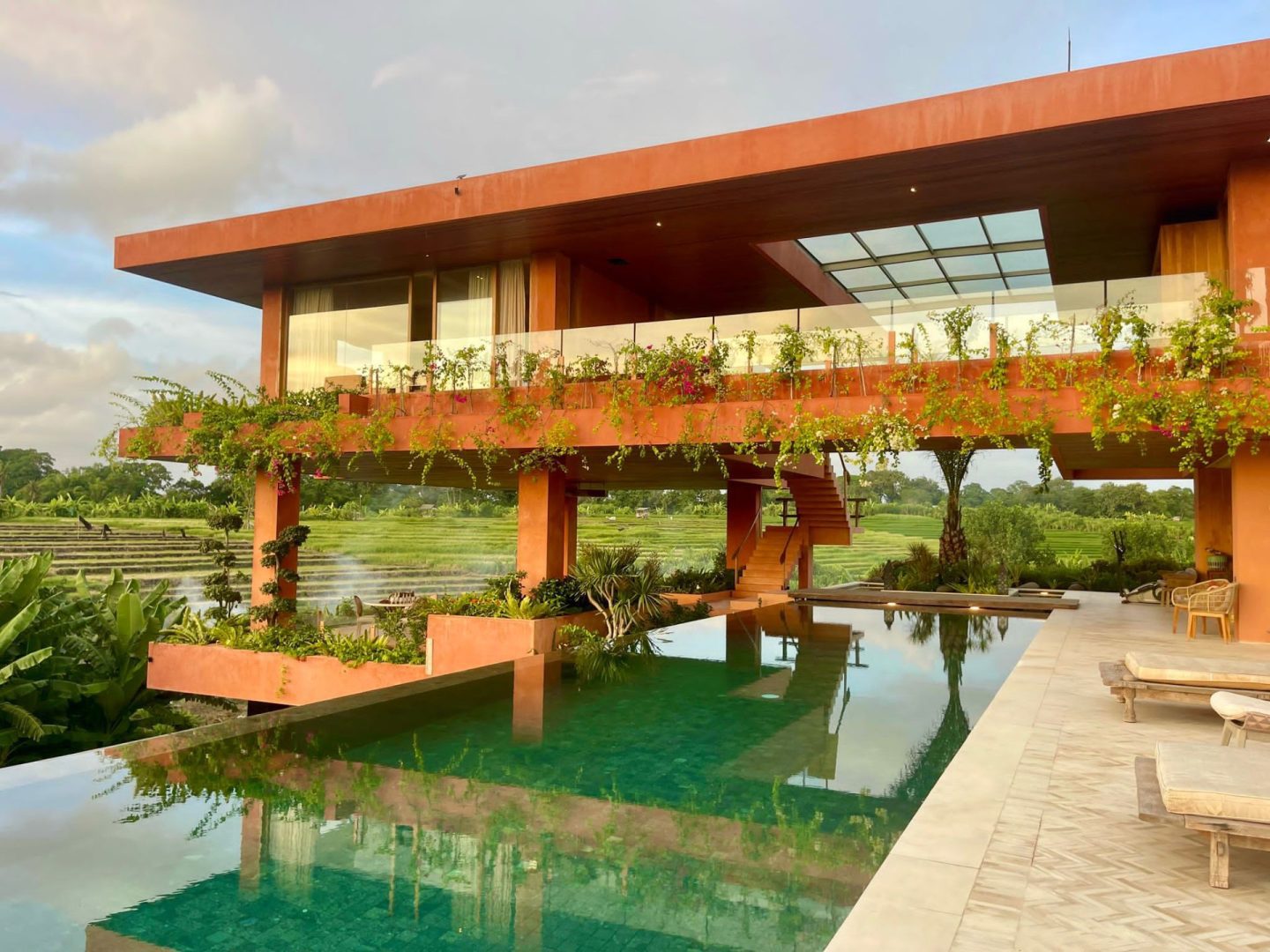 Raised on a 23-acre plot facing unbelievable sun-set rice paddy views and only 150 meters sharing the same valley, this exclusive home has 2.180m2 with 6 en suite bedrooms of 75m2 each and an incredible 30m2 infinity pool into the view along the plot from side to side. It also has a half basketball specially designed for one of the family members of the property and a lower level by the river for an exclusive studio, office, home theater, or private gym.