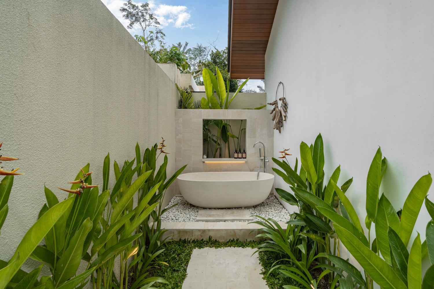 Villa Secret Garden offers four air-conditioned bedrooms with en-suite bathrooms, including a master bedroom with an outdoor bathtub. The open-plan living area and fully equipped kitchen create a welcoming space, while the infinity pool, whirlpool, and outdoor spa blend seamlessly with the jungle surroundings.